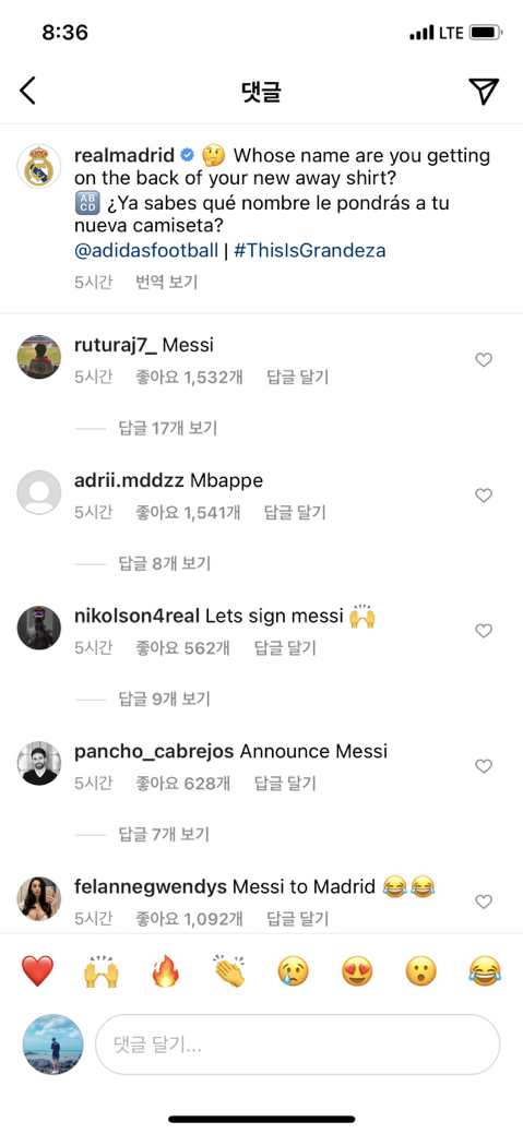 레알 마드리드 - 메시를 원하는 댓글들ㅋㅋㅋㅋ