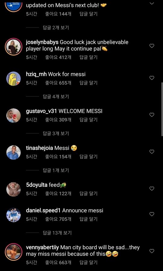 [메시 재계약 불발로 인한 대부분 팀들 인스타 댓글 상황ㅋㅋㅋ]