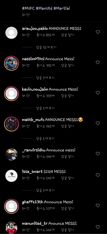 맨유 - 메시를 원하는 댓글들ㅋㅋㅋㅋ