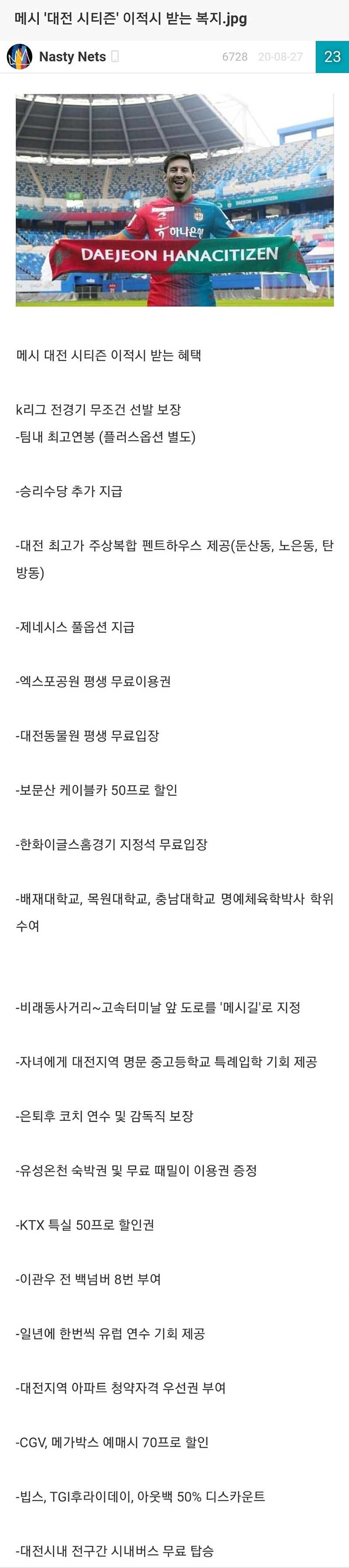 [메시가 '대전 시티즌' 이적시 받는 복지.jpg]