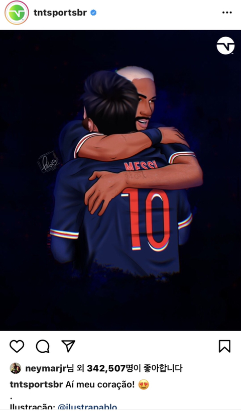 파리 유니폼을 입고 재회하는 일러스트에 좋아요를 누른 네이마르 ㄷㄷ...