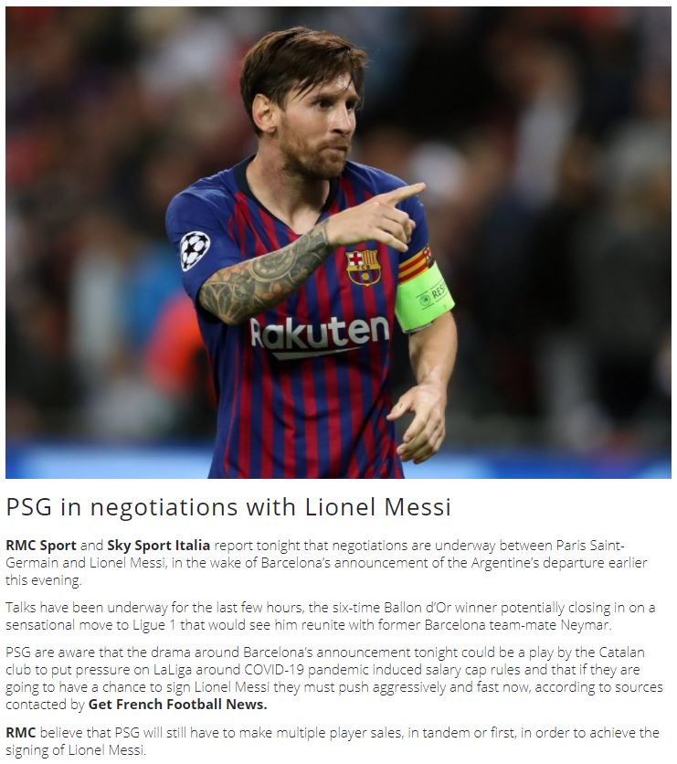 (기사 전문: https://www.getfootballnewsfrance.com/2021/psg-in-negotiations-with-lionel-messi/ ) |