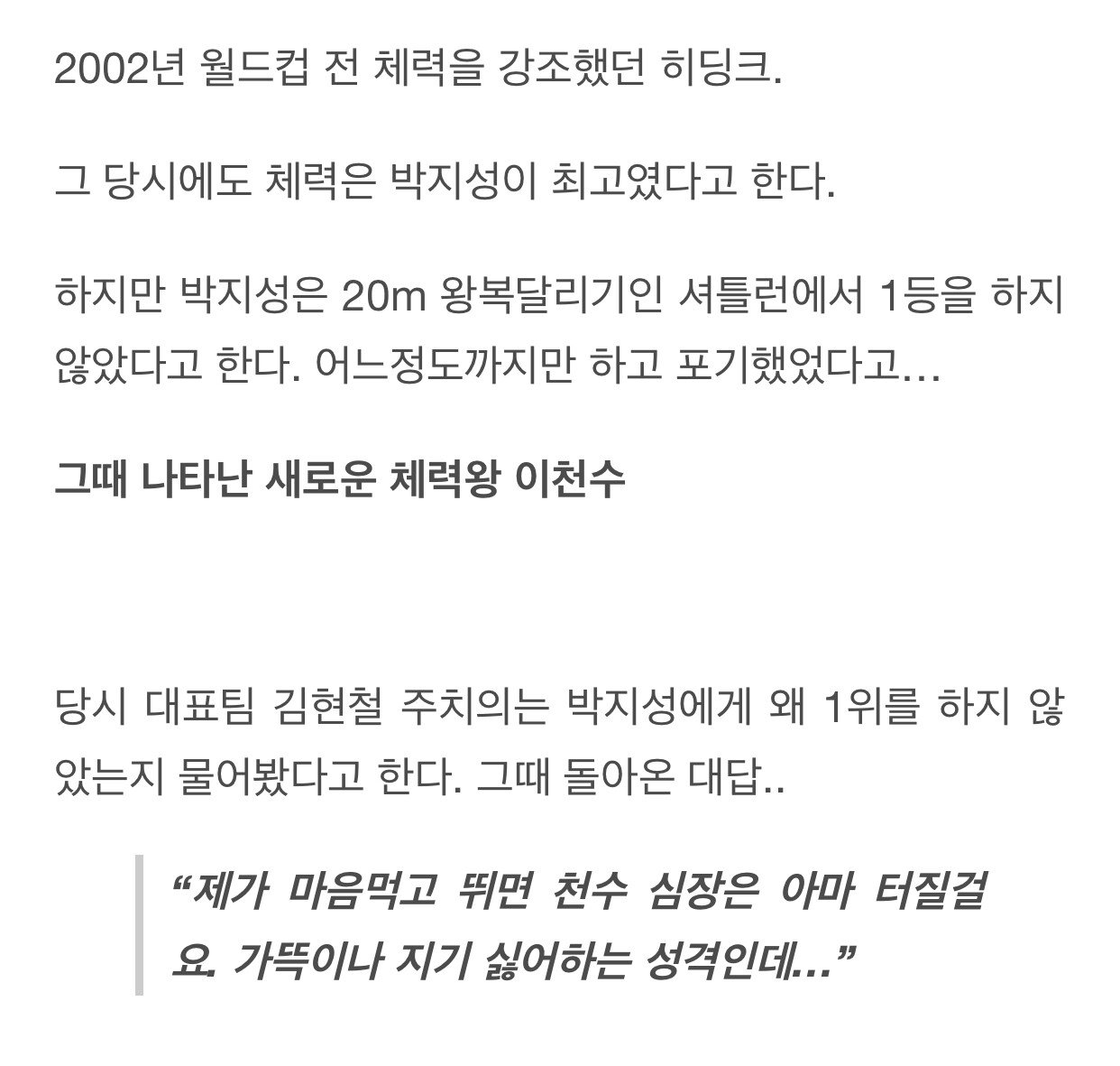 '두개의 심장' 박지성이 체력에서 이천수를 이기지 못한 이유