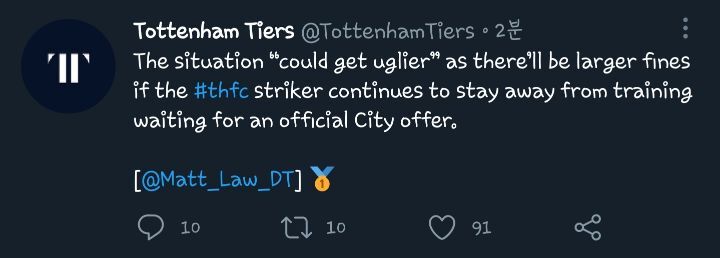 [텔레그래프-맷 로]해리 케인이 시티의 공식 오퍼를 기다리며 계속해서 태업을 한다면 더 큰 벌금이 있을 것/ 상황은 더 악화될 수 있음 지금 이 행동이 맞는거야??.. 해리 카네?
