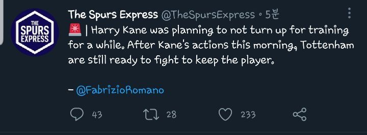 [파브리지오 로마노] 꽤 오랫동안 훈련 불참을 계획해왔던 해리 케인
