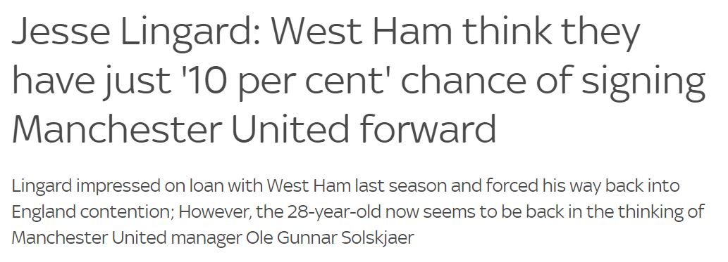(기사 전문: https://www.skysports.com/football/news/12040/12371069/jesse-lingard-west-ham-think-they-have-just-10-per-cent-chance-of-signing-manchester-united-forward )