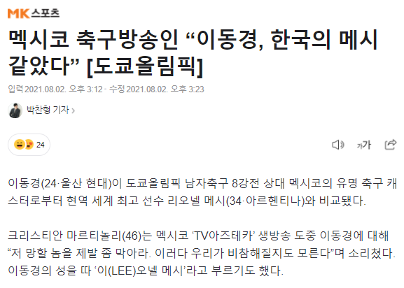 [멕시코에서 극찬한 이동경 "마치 이(LEE)오넬 메시"]