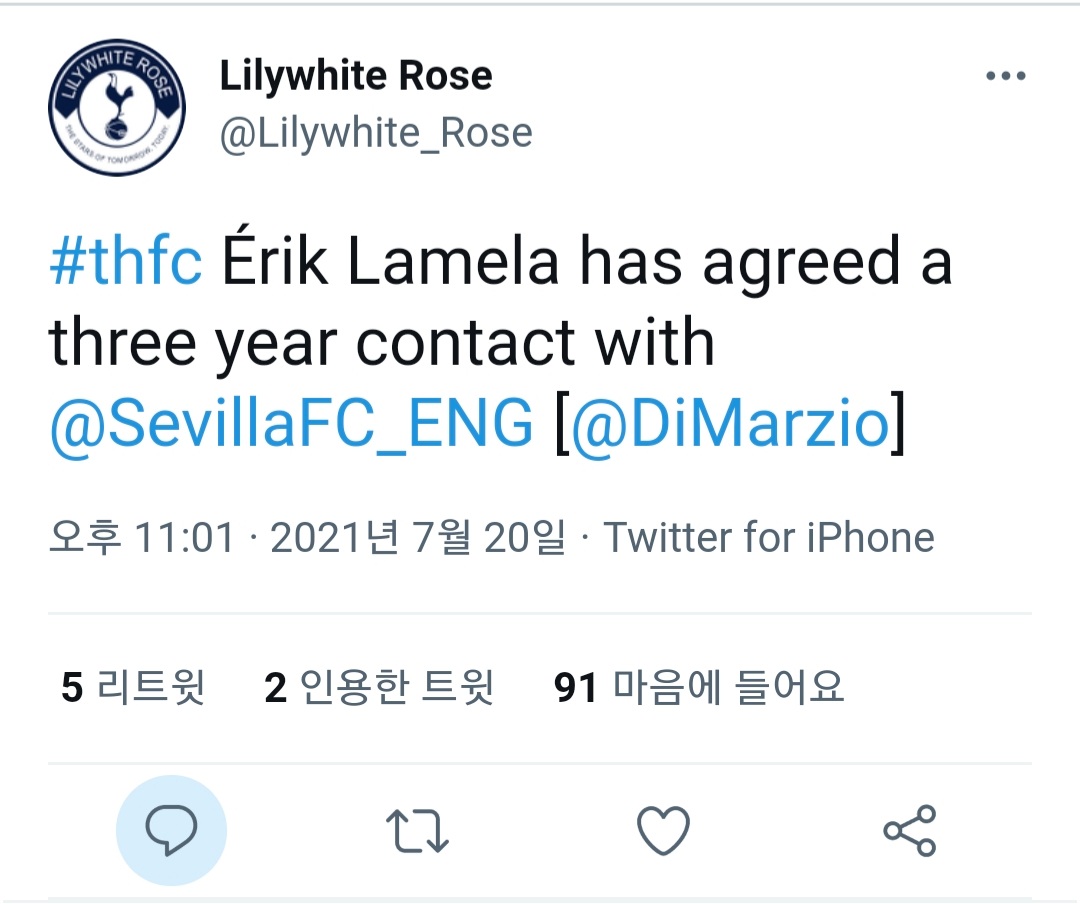 (DiMarzio)토트넘의 에릭 라멜라는 세비야와 3년계약싸인함