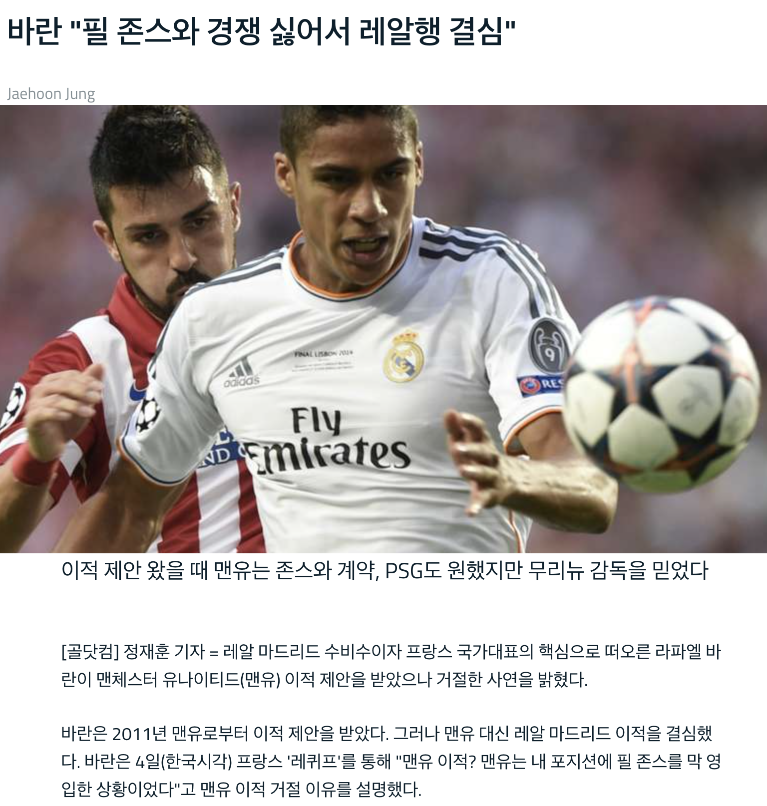 | 2011년 바란이 맨유를 거절하고 레알 마드리드록 이적한 이유 | |