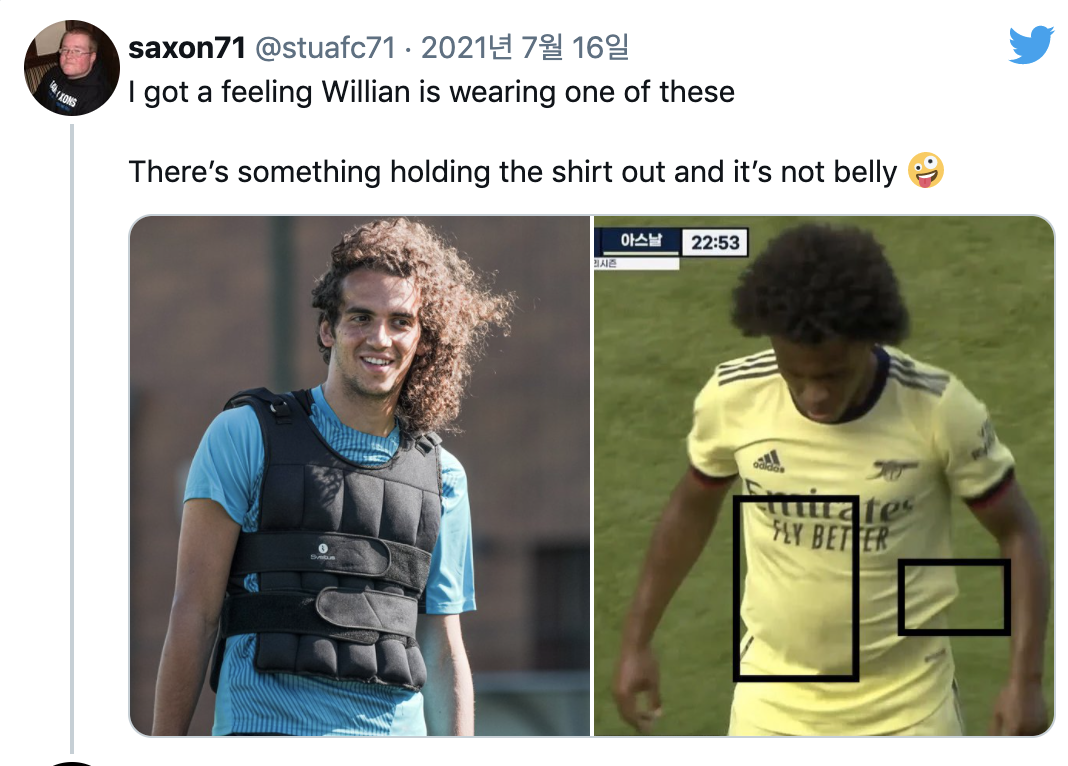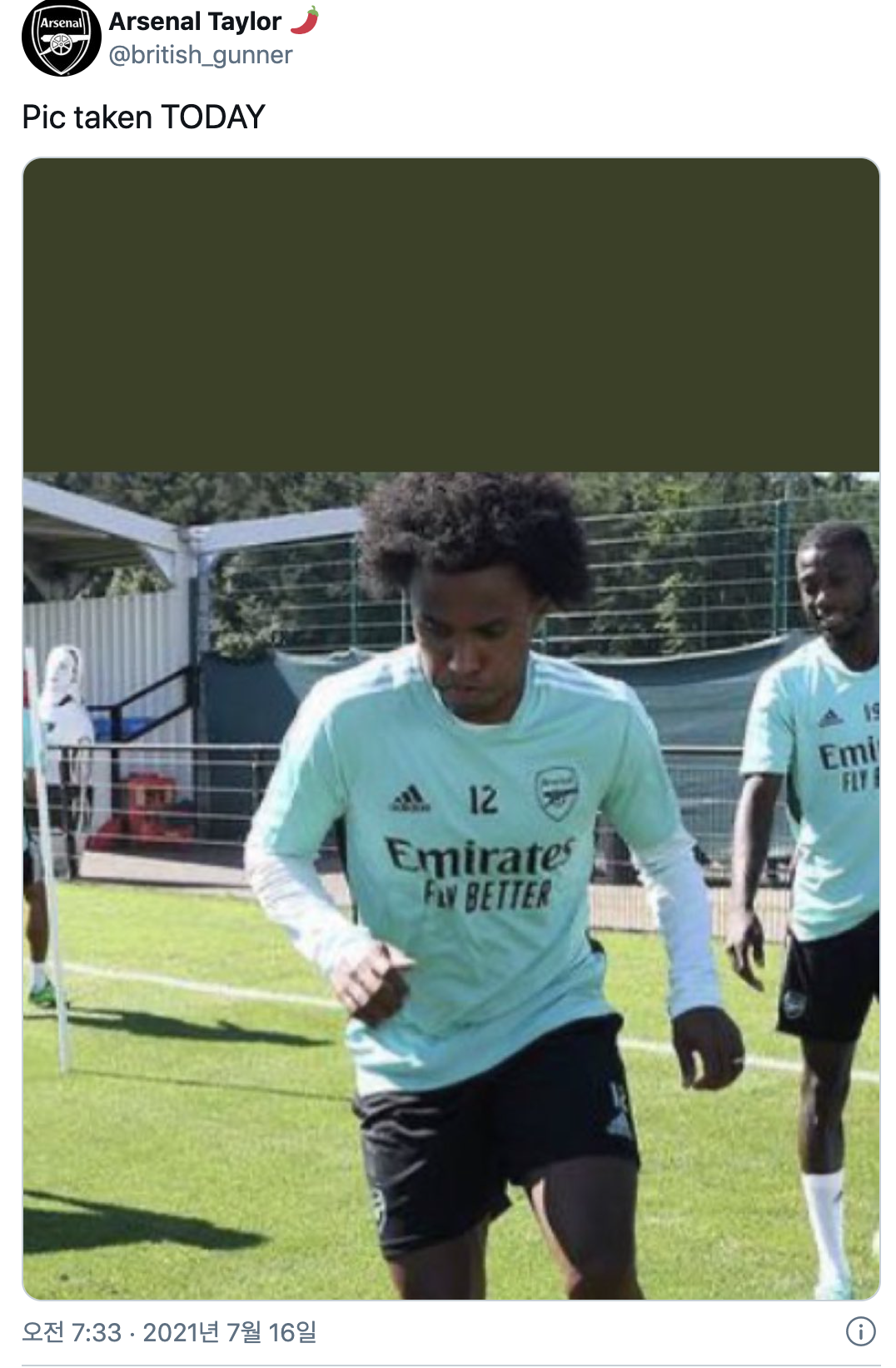 사진 속의 윌리안에게 새로운 아스날의 유니폼은 너무나 작아보였다.