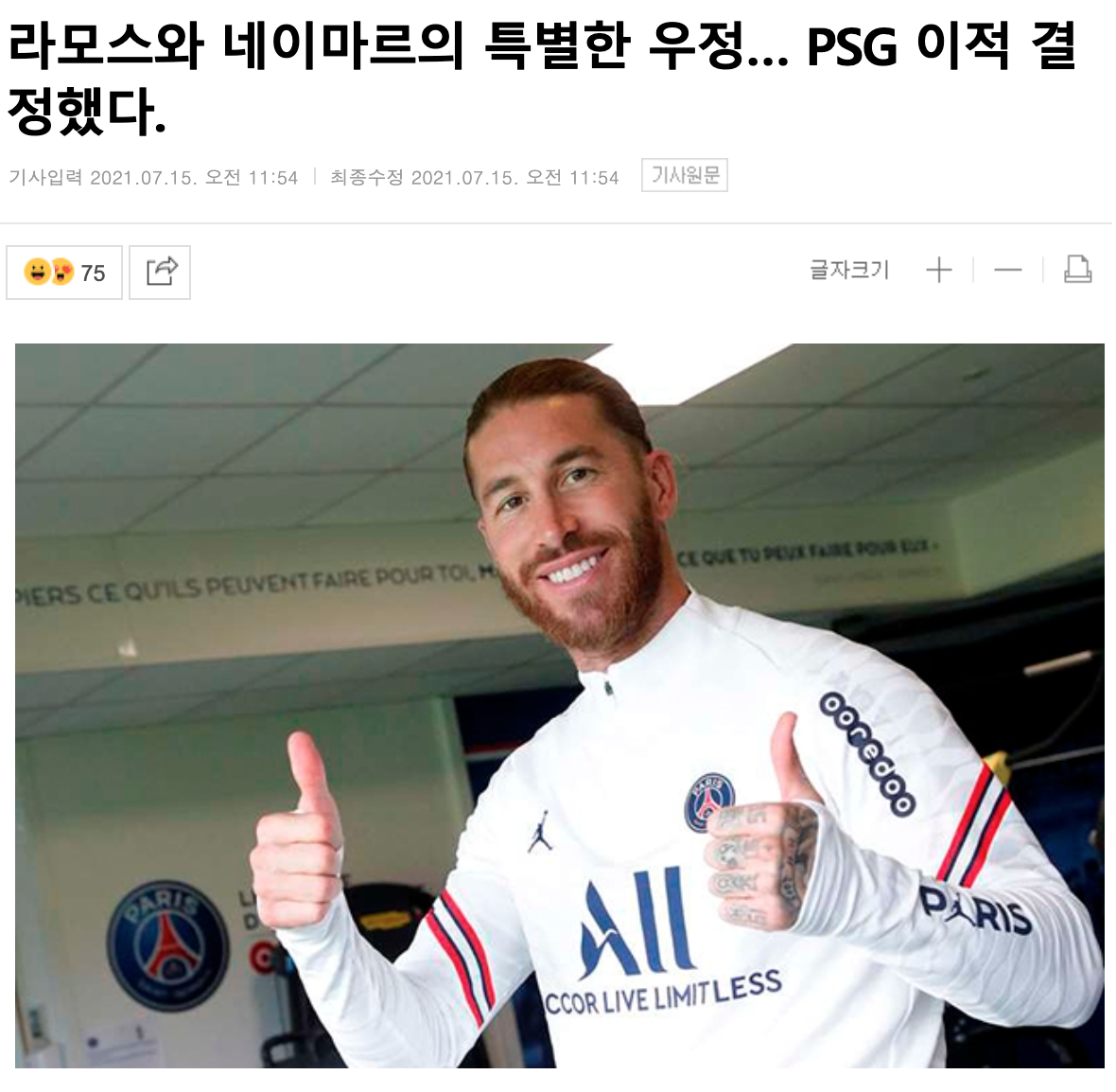 기사에 따르면 라모스는 PSG와의 서명전 네이마르가 자신을 설득했다고 합니다. 라모스와 네이마르는 각자 최대라이벌 팀인 레알마드리드와 바르샤에서 뛰었음에도 불구하고 항상 특별한 우정을 가지고 있었다고 합니다.