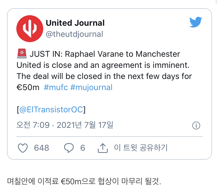 [[El Transistor] - 바란의 맨유행 가능성은 높으며, 합의 임박했음]