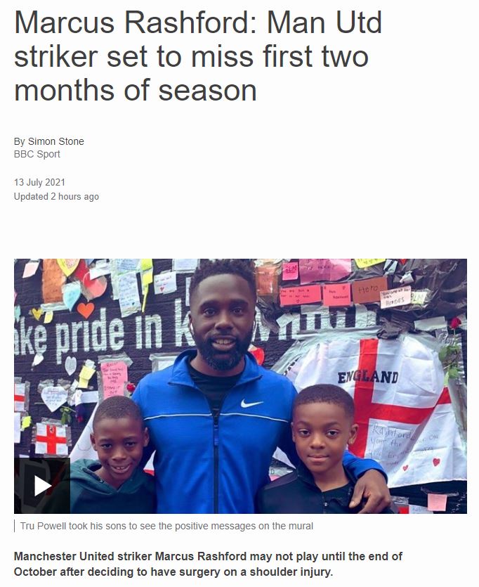 | (BBC) 래시포드, 시즌 첫 두달 결장 예정 | |