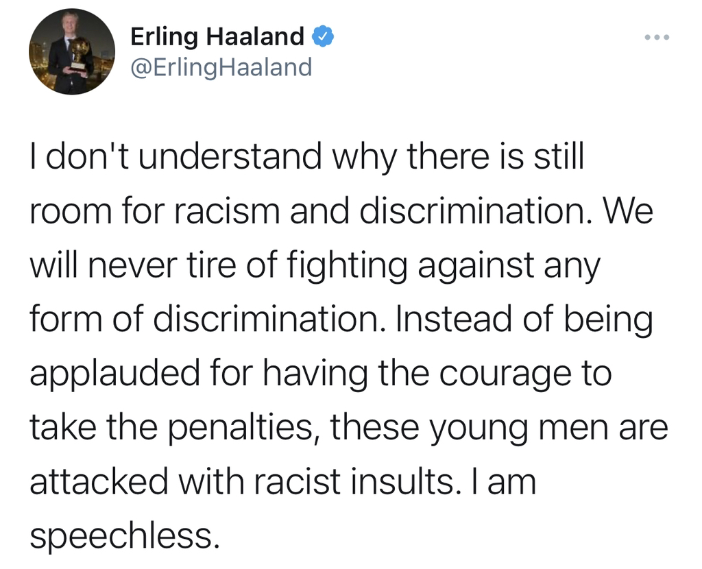 인종차별에 대해 이해가 안간다는 말을 한 홀란드의 트윗.