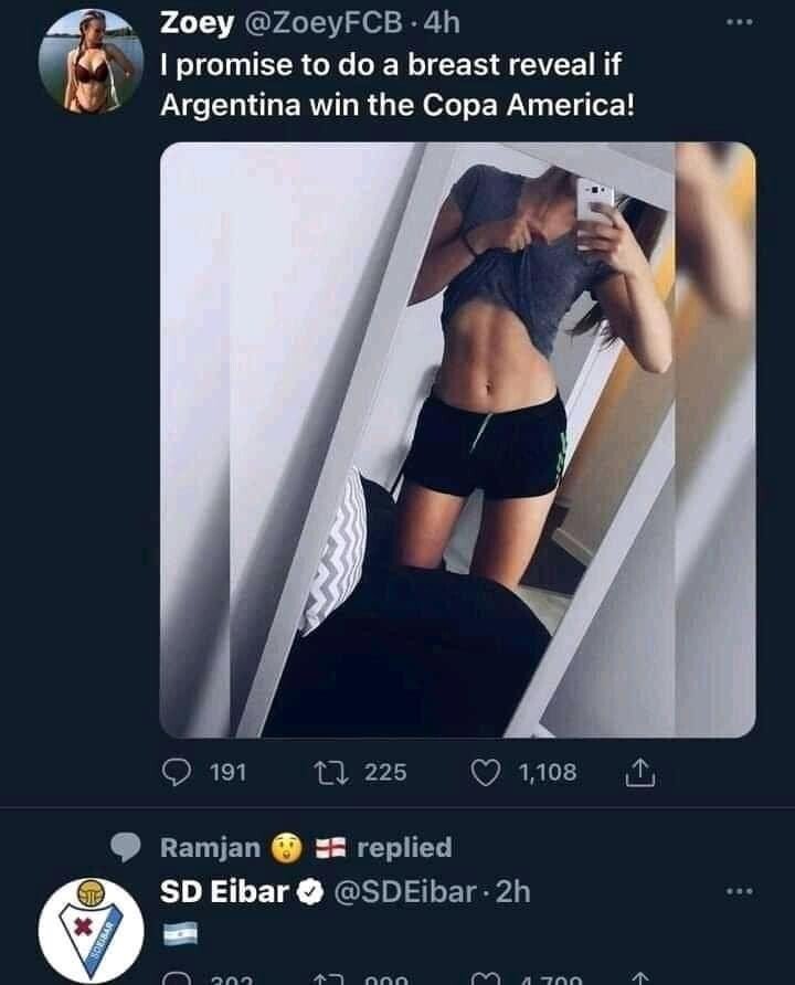 아르헨티나가 우승하면 가슴 노출 사진을 올린다던 여성 축구팬