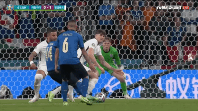 키에사의 코스좋은 오른발 슛을 막아내는 픽포드 ㄷㄷ