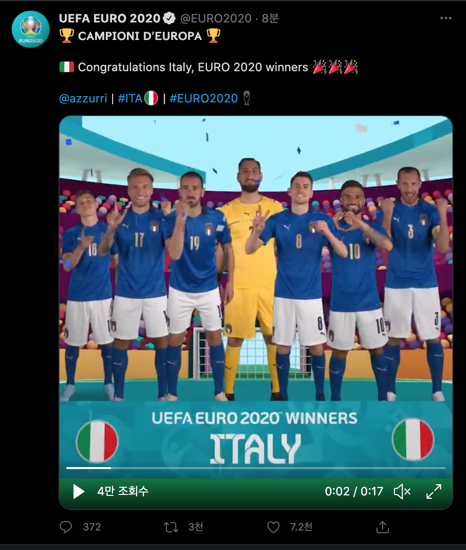 [[오피셜] 이탈리아 53년만에 유로 우승(38경기 무패)]