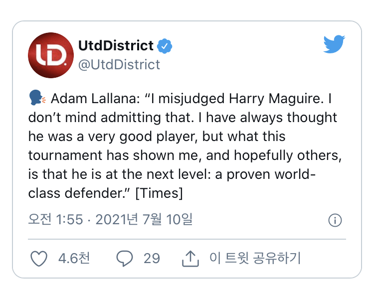 유로 2020 이후 적어도 나에겐 매과이어는 그냥 좋은 선수가 아닌, 월드 클래스 선수야