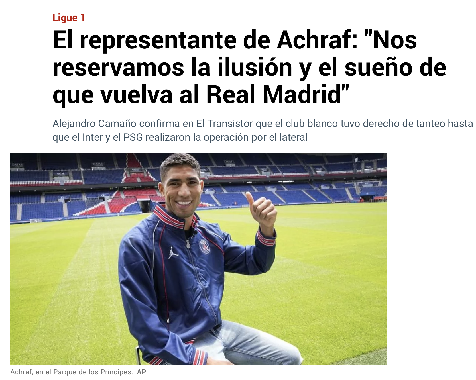 에이전트 : "하키미는 마드리드에서 태어나고 자랐고 최종 목표로는 마드리드에서 뛰는 것이다" (잉????)