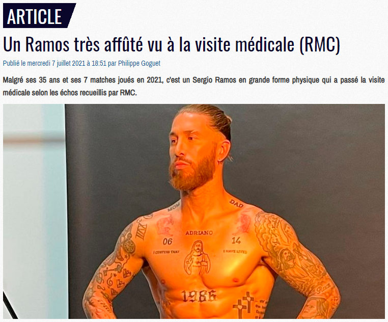 부합시는 "오늘 오후 종료된 라모스의 메디컬 결과는 놀랍습니다. 그는 미친 훈련 일정을 소화 중이며 오늘 라모스의 메디컬 결과를 본 PSG 직원들은 모두 충격받았습니다. 모든 의학적 결과가 훌륭합니다."