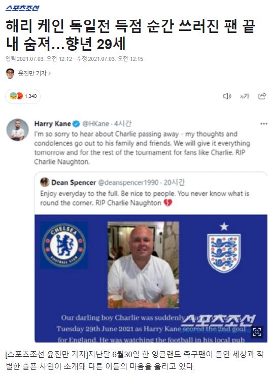 [독일전 케인 득점 순간 쓰러진 29세 팬, 끝내 숨져..]