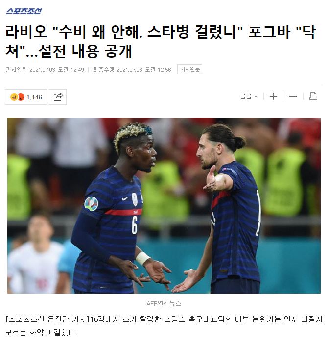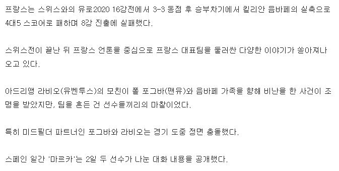 | 유로2020 16강 스위스전, '포그바-라비오' 설전 내용 | |