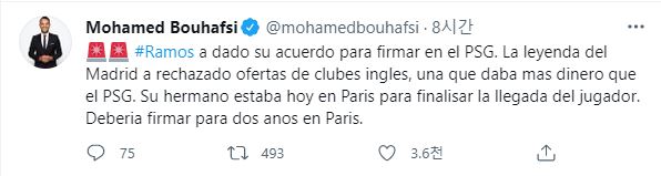 라모스를 파리로 이적하기로 동의함.