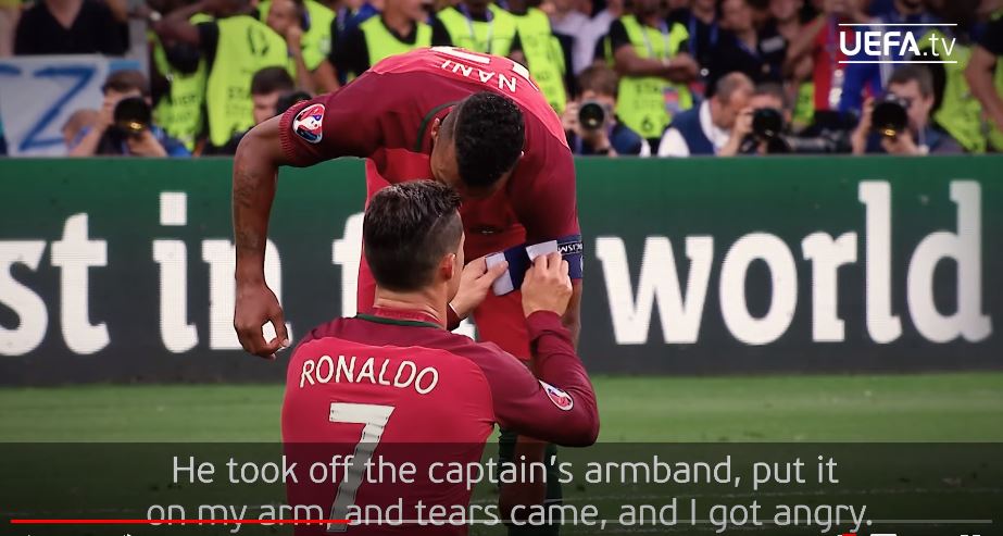 "호날두가 주장 완장을 빼고 내 팔에 주며 살짝 울 때 나는 화가났어. 난 이상한 기분이 들면서 그냥 팀원들한테 컴온! 지금보다 우린 더 잘해야해! 라고 소리치고 싶었고 그랬던거 같아ㅎ.."