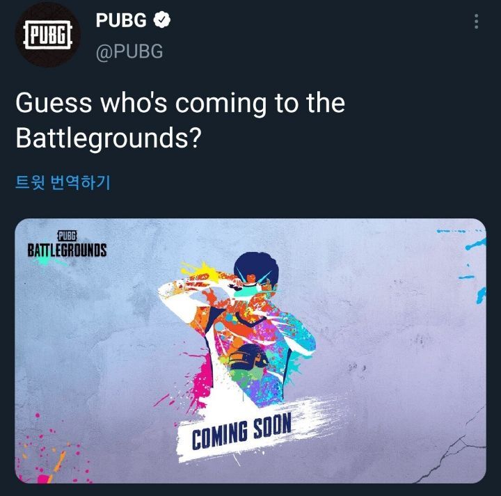 배틀그라운드와 손흥민의 콜라보를 예고하는 펍지 공식 트윗ㄷㄷㄷㄷㄷㄷ