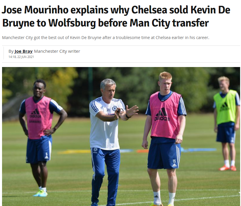 무리뉴는 데 브라위너를 팀에 남기고 싶었지만 데 브라위너는 본인에게 필요한 게 무엇인지 확실하게 알고 있었고 무리뉴는 보내줄 수 밖에 없었음