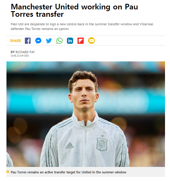 기사 원문 : https://www.manchestereveningnews.co.uk/sport/football/transfer-news/manchester-united-pau-torres-transfer-20863535.amp?__twitter_impression=true