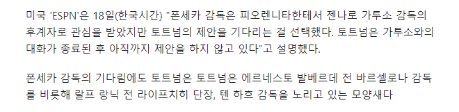 [여전히 토트넘을 기다리고 있는 폰세카]