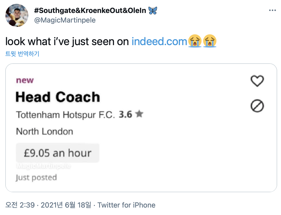 [영국 구직 사이트에 올라온 토트넘 감독직ㅋㅋㅋㅋ]