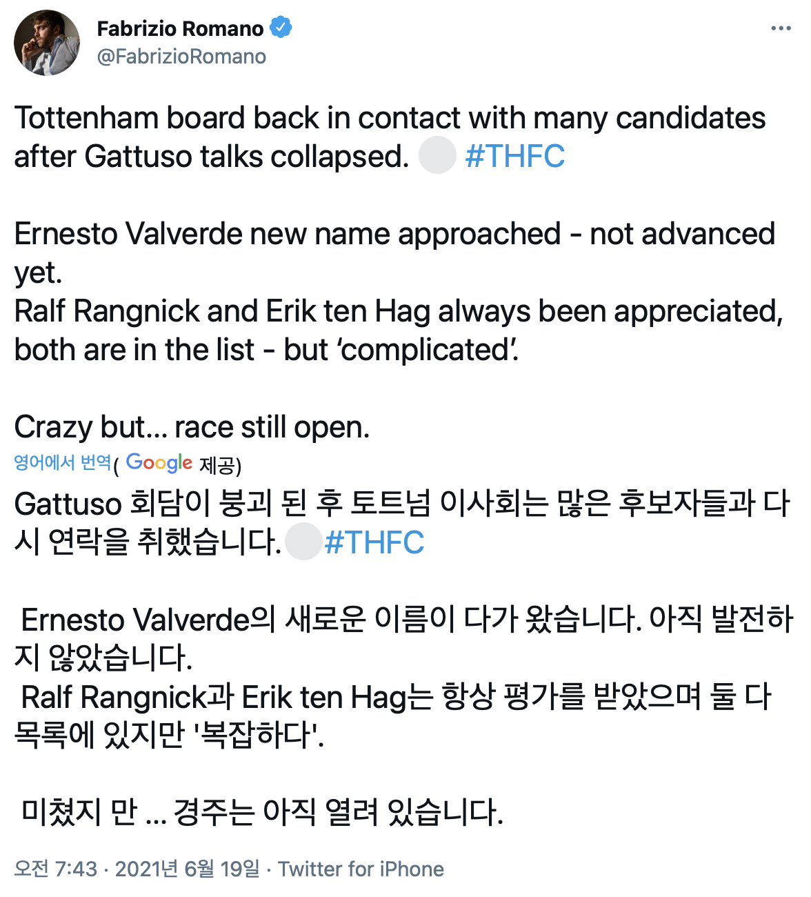 [토트넘 감독으로 '발베르데'가 거론됐다]