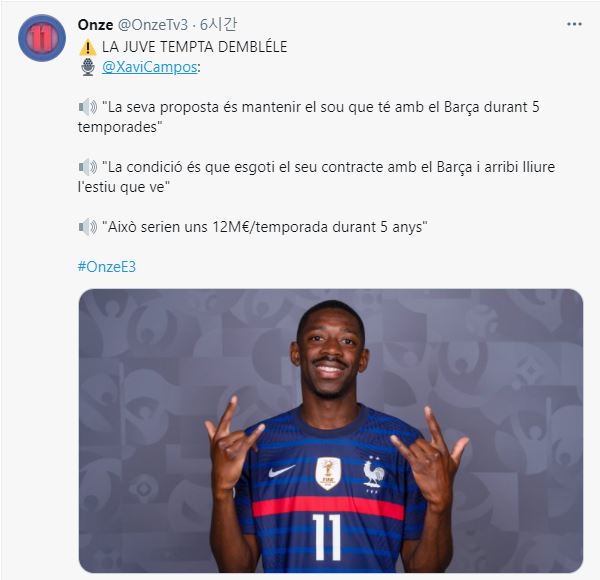 유벤투스는 뎀벨레에게 연봉 €12m - 5년계약 오퍼, 조건은 FA 합류 제안을 받았다.