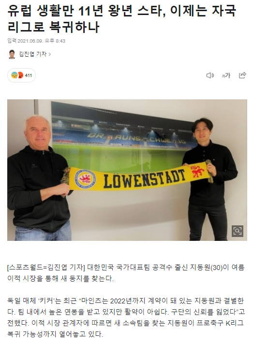 기사와 다른 내용은 마인츠는 지동원과 계약해지 확정은 아니고 유력이라고 합니다.