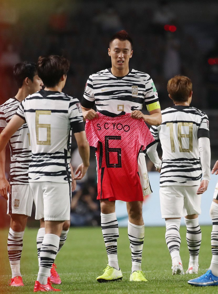 대한민국 선수들의 유상철 감독 추모 세레머니.gif