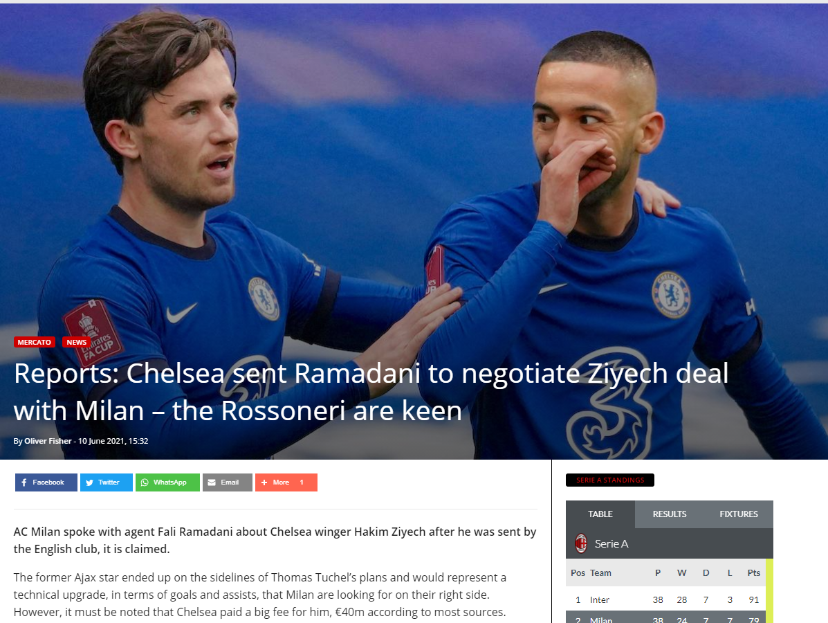 기사 원문 : https://sempremilan.com/reports-chelsea-sent-ramadani-to-negotiate-ziyech-deal-with-milan-the-rossoneri-are-keen |