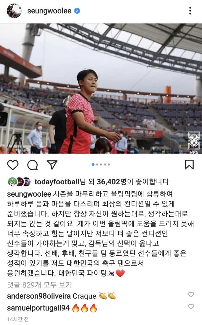 안타깝네요..ㅠㅠ 이승우 선수도 화이팅입니다!