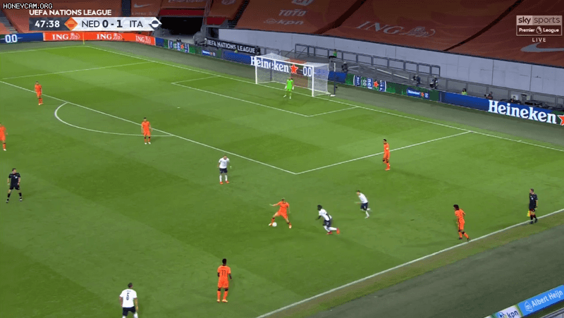 20-21 네이션스리그 '네덜란드 vs 이탈리아'에서 나온 장면. 피를로를 전담 마크하던 박지성이 떠오르네요. 결과는 바렐라의 득점으로 이탈리아의 승리