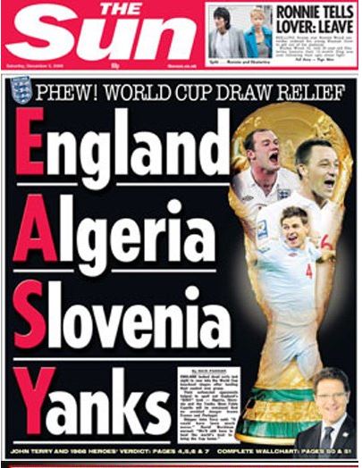 2010 남아공 월드컵 조 추첨에서 알제리, 슬로베니아, 미국과 한 조에 편성된 잉글랜드. 쉬운 조 편성을 받았다며 각 국가명의 앞철자를 따서 'EASY'라는 희대의 드립을 남겼지만.. 1승 2무로 간신히 16강에 오른 후 탈라함ㅋㅋ