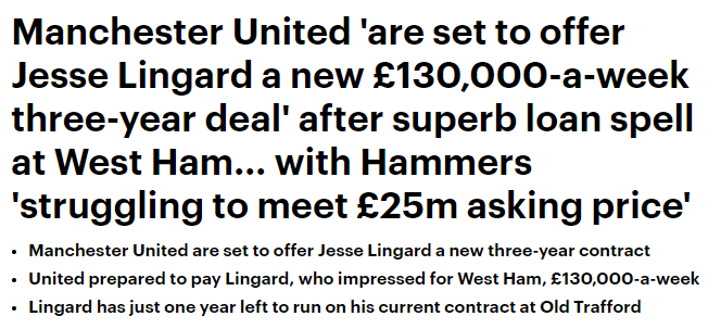 기사에 따르면 맨유는 린가드에게 주급 13만 파운드 3년 재계약을 제시할 예정이라고 합니다.