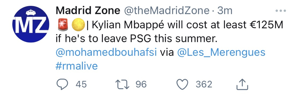 올 여름 음바페가 파리를 떠난다면 최소 125m 유로정도 라고 합니다.