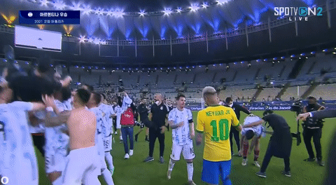 우승이 확정되자 메시에게 뛰어가는 아르헨티나 선수들.gif