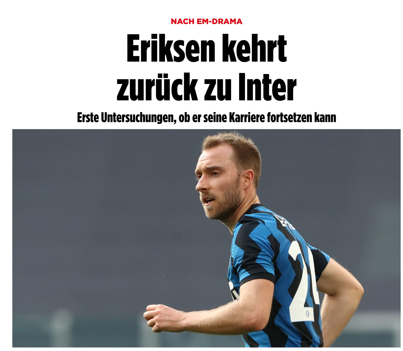 "Sky Sports"가 보도한 바와 같이 에릭센은 다음 주에 이탈리아로 돌아와 메디컬 테스트를 통해 제세동기를 사용하지 않고도 경기를 할 수 있는지 여부를 명확히 한다고 합니다. 이 테스트에서 제세동기를 해야한다고 하면 에릭센은 세리에에서, 인터밀란에서 뛸 수 없게 됩니다...