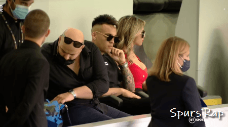 [관중석에서 경기를 지켜보는 라우타로 옆에 김계란.gif]