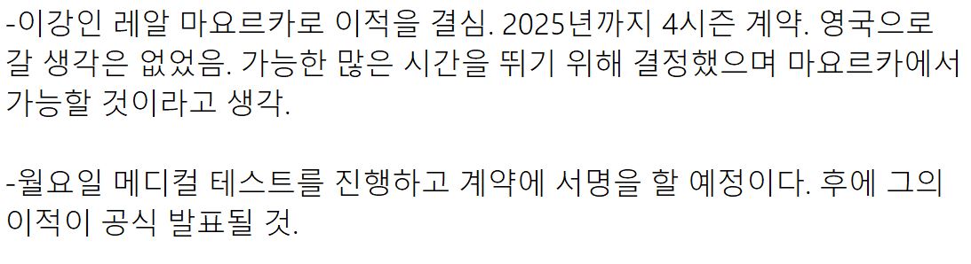 | (풋볼마요르카)이강인, 월요일 마요르카 메디컬 테스트, 계약 예정 | |
