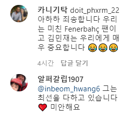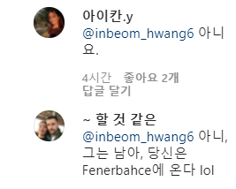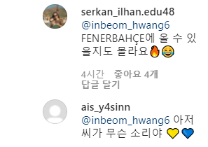 [김민재 인스타에 황인범 댓글 본 페네르바체 팬들 반응ㅋㅋㅋㅋ]