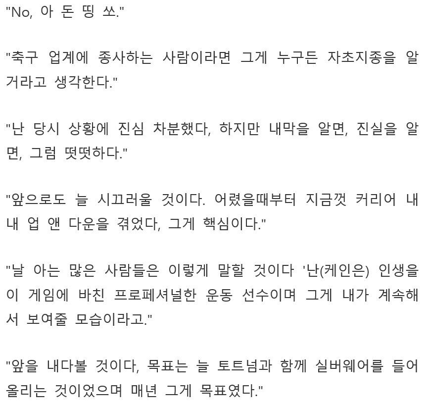 [케인 "이번 이적 사가때문에 내 명성이 더렵혀졌냐고?"]