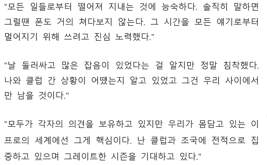 어차피 이적 빠그러진거 이런 인터뷰 하지 말고 열심히 하자....